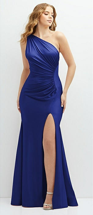Asymmetrical Open-Back One-Shoulder Stretch Satin Mermaid Dress in cobalt blue