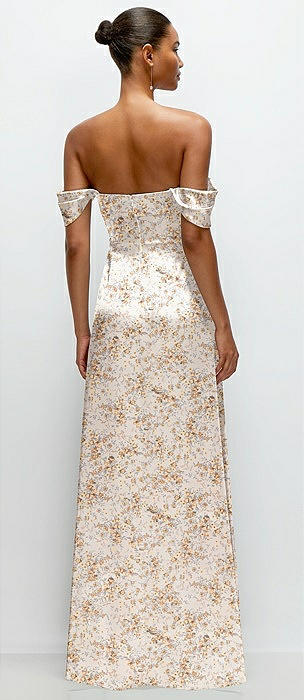 Floral A-Line Satin Maxi Dress with Convertible Off-the-Shoulder or Strapless Looks in golden hour