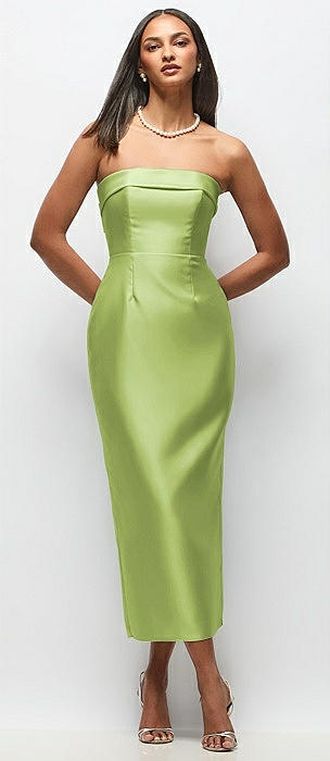 Strapless Cuff Satin Midi Dress with Column Skirt & Back Bow in mojito