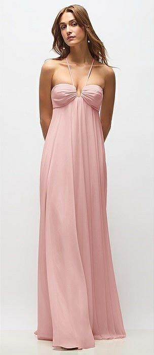 Empire Waist Chiffon Halter Maxi Dress with Convertible Spaghetti Straps in rose