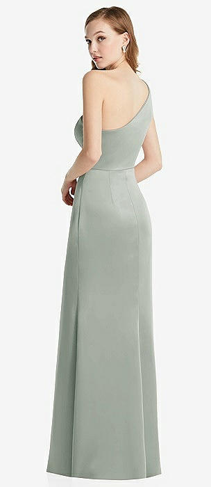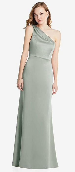 Shirred One-Shoulder Satin Trumpet Dress - Maddie in willow green