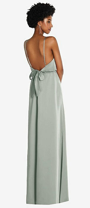 Low Tie-Back Maxi Dress with Adjustable Skinny Straps in willow green