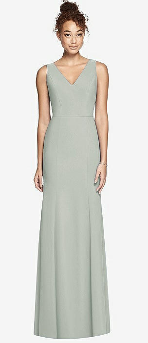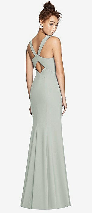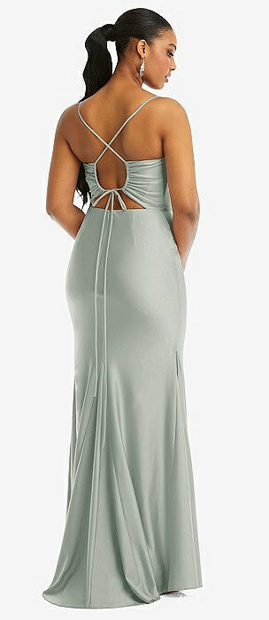Cowl-Neck Open Tie-Back Stretch Satin Mermaid Dress with Slight Train in willow green