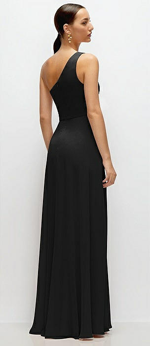 Chiffon One-Shoulder Maxi Dress with Circle Skirt in black