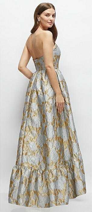 Strapless Cat-Eye Boned Bodice Brocade High-Low Dress in winter mist