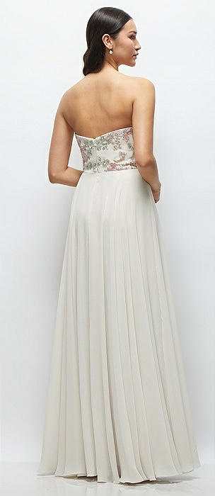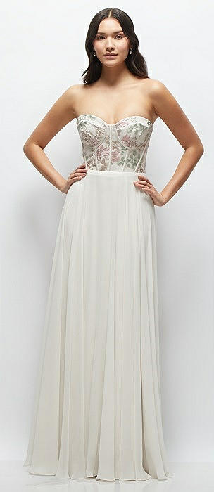 Strapless Floral Embroidered Corset Maxi Dress with Chiffon Skirt