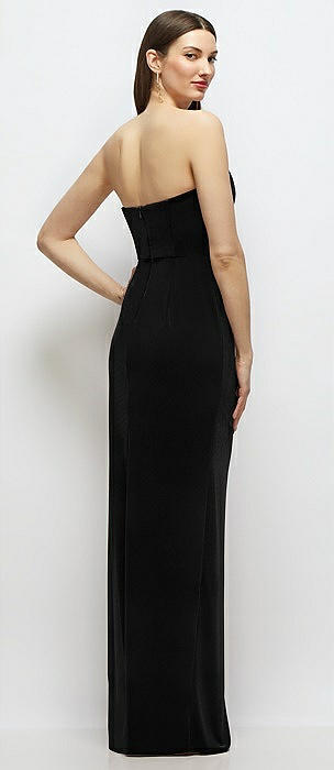 Strapless Corset Bodice Velvet Column Maxi Dress in black