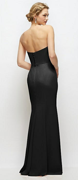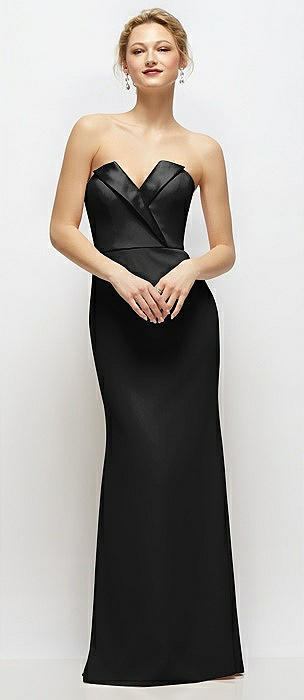 Strapless Crepe Tuxedo Gown with Satin Lapels and Buttons in black
