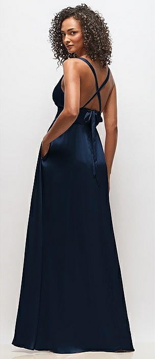Faux Wrap Whisper Satin Maxi Dress with Draped Tulip Skirt in atlantic blue
