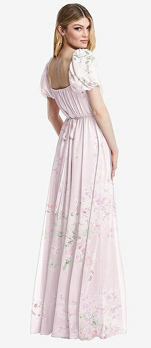 Puff Sleeve Chiffon Maxi Dress with Front Slit in watercolor print