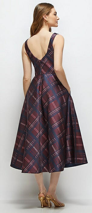Square Neck Alba Tartan Satin Midi Dress in cabernet midnight tartan