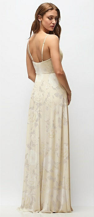 Wrap Bodice Floral Chiffon Maxi Dress with Adjustable Spaghetti Straps in butter yellow floral
