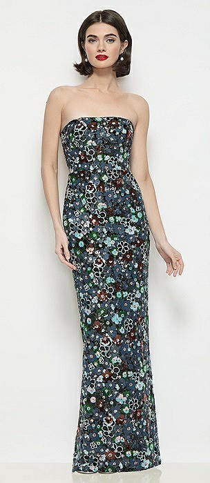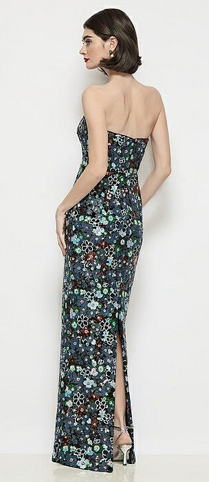 Strapless Column Stretch Floral Sequin Maxi Dress in black multi