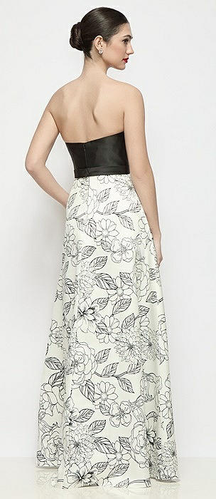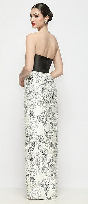 Strapless Satin Maxi Dress with Black and White Floral Column Skirt in black / botanica