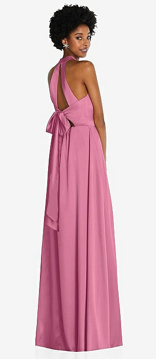 Stand Collar Cutout Tie Back Maxi Dress with Front Slit in orchid pink