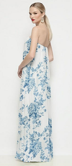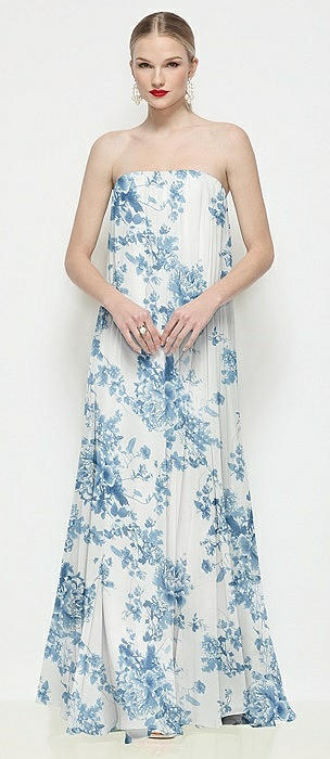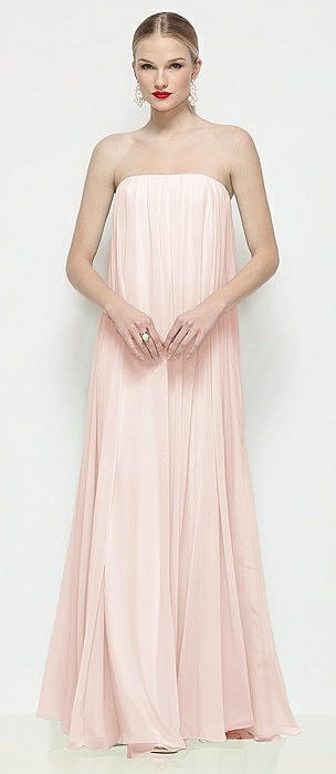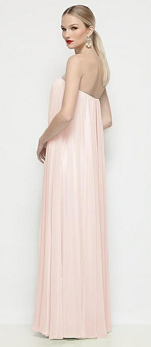 Strapless Shirred Chiffon Trapeze Maxi Dress