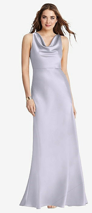 One-Shoulder Asymmetrical Cowl Back Stretch Satin Mermaid Dress in silver dove
