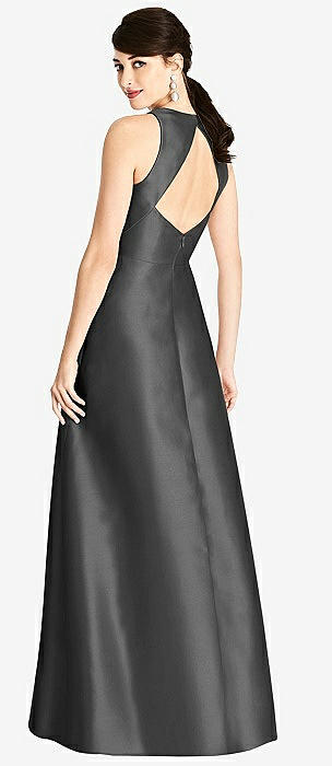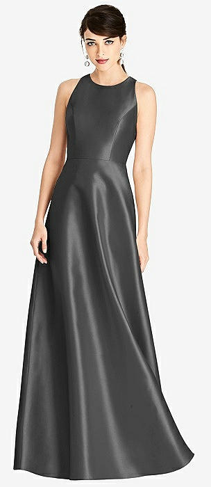 Sleeveless Open-Back Satin A-Line Dress in pewter