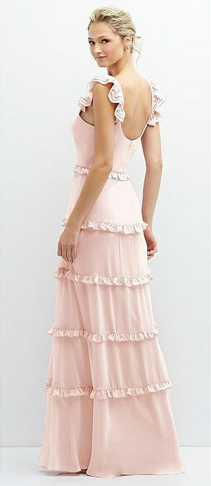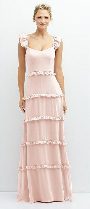 Tiered Chiffon Maxi A-line Dress with Convertible Ruffle Straps in blush