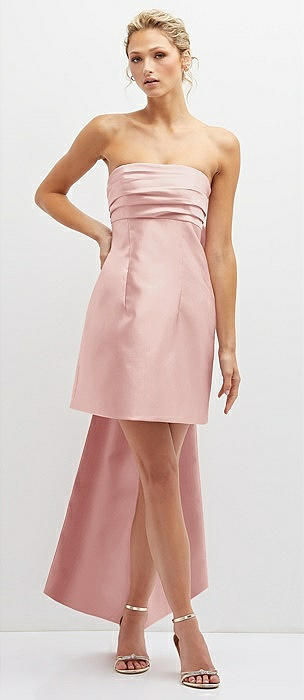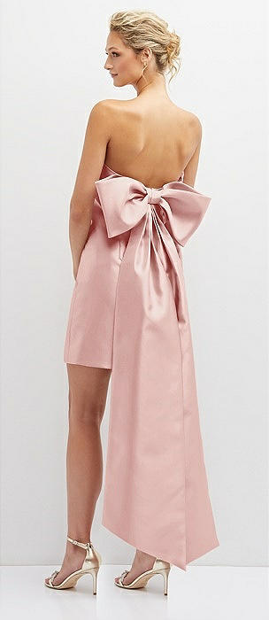 Strapless Satin Column Mini Dress with Oversized Bow in rose