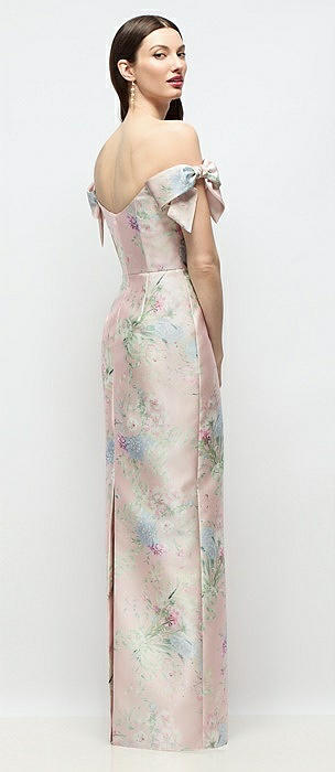 Basque-Neck Esme Floral Satin Column Maxi Dress with Off-the-Shoulder Bows in esme floral