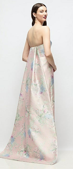 Strapless Esme Floral Satin Column Dress with Removable Watteau Train in esme floral