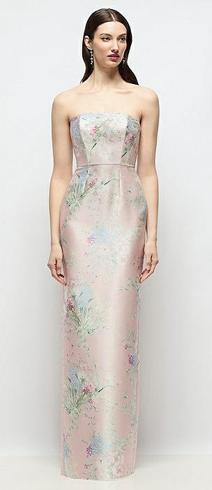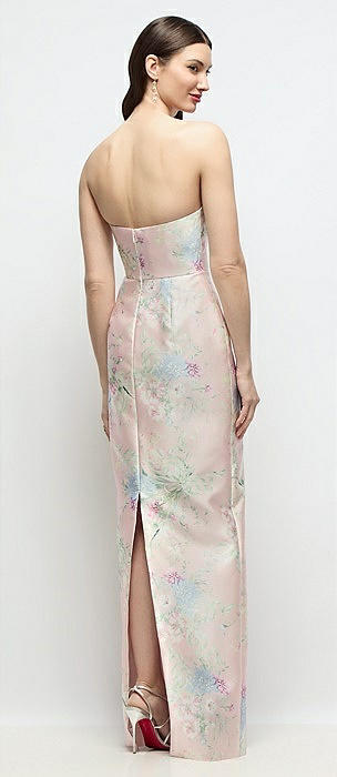 Strapless Esme Floral Satin Column Dress with Back Slit in esme floral
