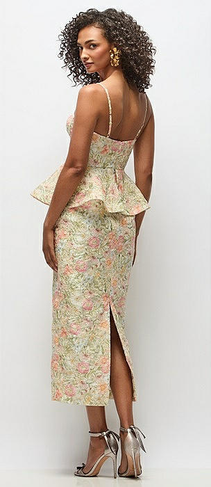Floral Re-Embroidered Voile Bustier Midi Dress with Peplum over Column Skirt in wildflower multi