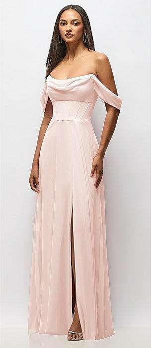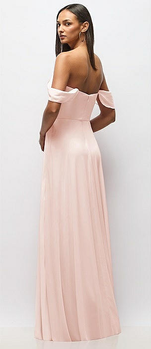 Chiffon Corset Maxi Dress with Removable Off-the-Shoulder Swags in blush