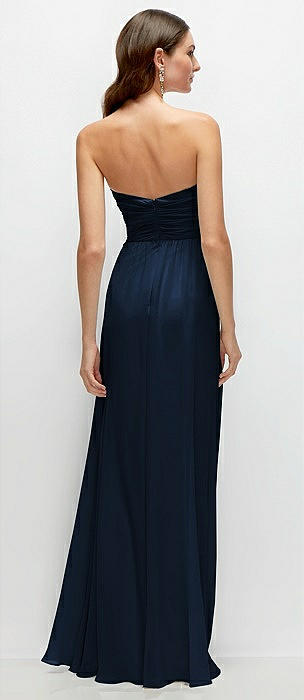Strapless Pleated Surplice Chiffon Maxi Dress with A-Line Skirt in midnight navy