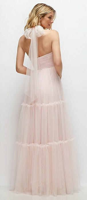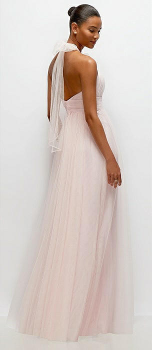 Tie-Back Halter Tulle Maxi Dress with Full Skirt & Rosette Detail in ballet pink