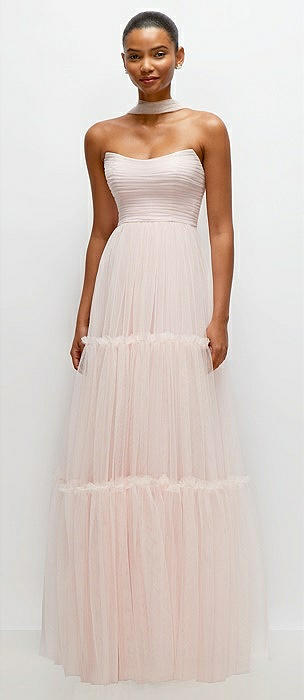 Strapless Cat-Eye Neu Tulle Tiered Maxi Dress with Convertible Sash in ballet pink