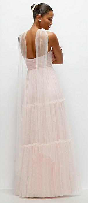 Bustier-Style Neu Tulle Tiered Maxi Dress with Convertible Straps in ballet pink