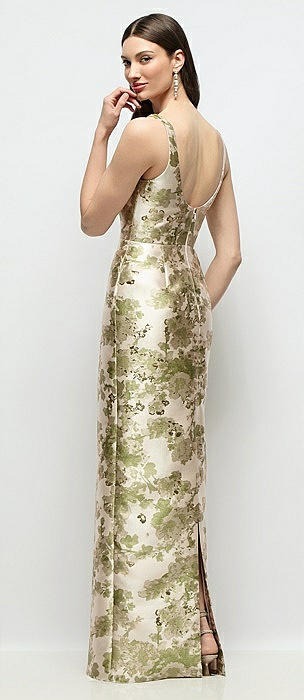Scoop Neck Floral Satin Column Maxi Dress in sage cottage rose