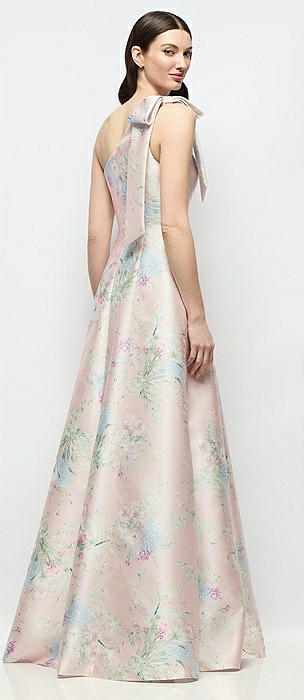 Bow One-Shoulder Full A-Line Esme Floral Satin Maxi Dress in esme floral