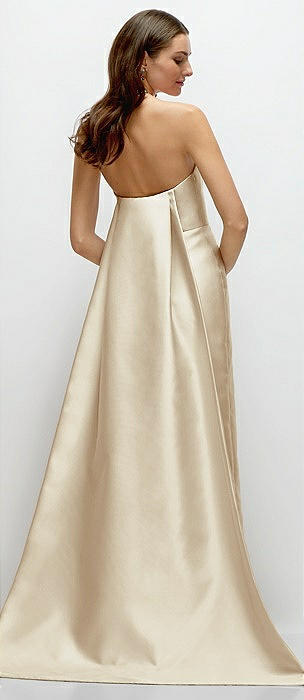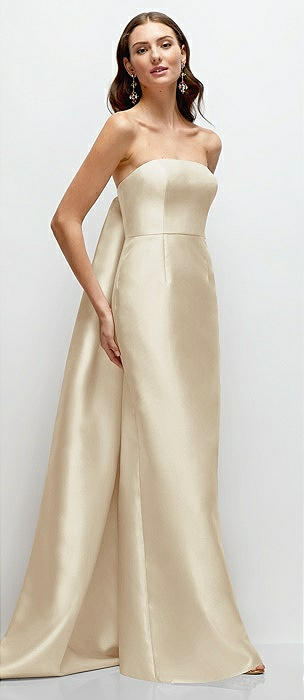 Strapless Satin Column Dress with Removeable Watteau Train in champagne