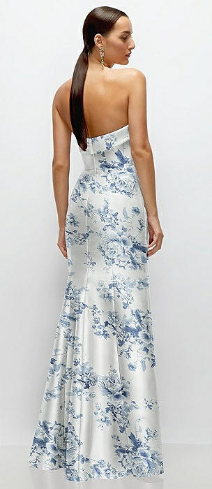 Strapless Cuff Neckline Floral Satin Trumpet Gown in cottage rose larkspur