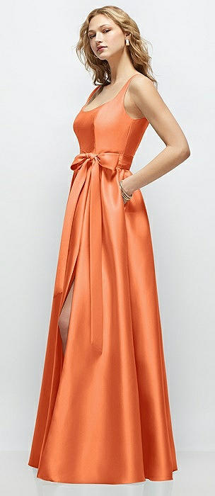 Scoop-Neck Tank Bodice Maxi Dress with Full Skirt in portofino orange
