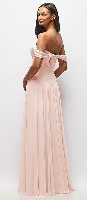 Off-the-Shoulder Draped Chiffon Maxi Dress in blush