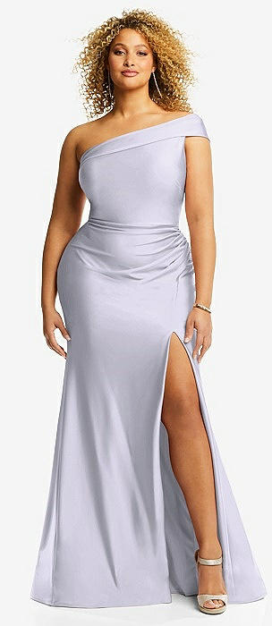 One-Shoulder Bias-Cuff Stretch Satin Mermaid Dress with Slight Train