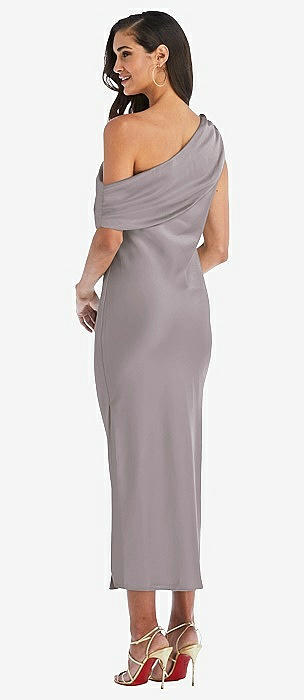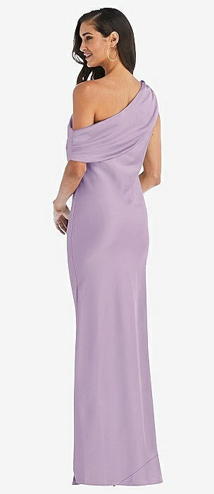 Draped One-Shoulder Convertible Maxi Slip Dress in pale purple