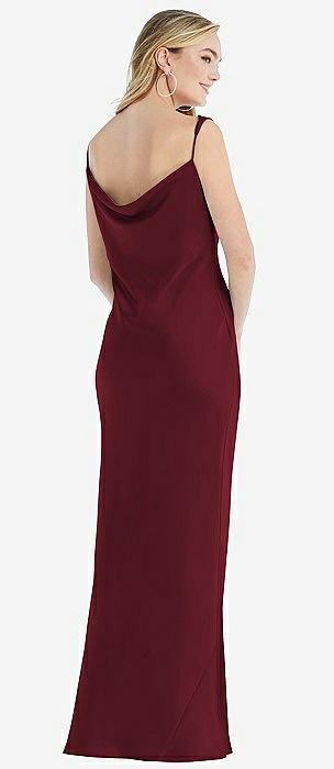 Asymmetrical One-Shoulder Cowl Maxi Slip Dress in cabernet