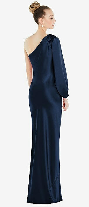 One-Shoulder Puff Sleeve Maxi Bias Dress with Side Slit in midnight navy