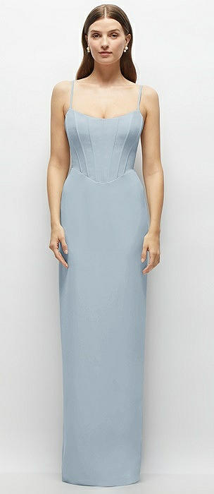 Corset-Style Crepe Column Maxi Dress with Adjustable Straps in mist