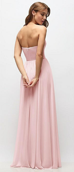 Strapless Basque Drop Waist Chiffon Maxi Dress with Shirred Skirt in ballet pink