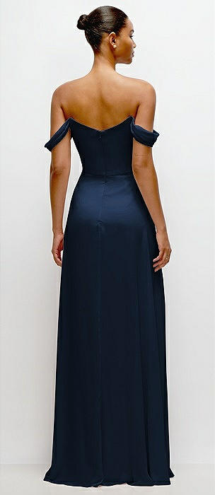Off-the-Shoulder Draped Neckline Maxi Dress in midnight navy