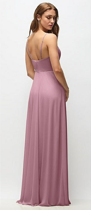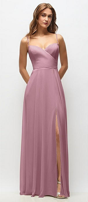 Wrap Bodice Chiffon Maxi Dress with Adjustable Spaghetti Straps in dusty pink