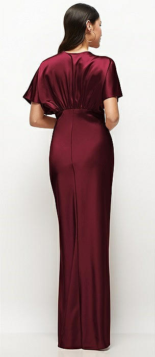 Plunge Neck Kimono Sleeve Satin Bias Maxi Dress in cabernet
