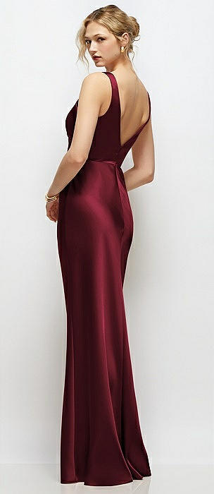 Sleeveless V-Neck Stretch Satin Bias Slip Maxi Dress in cabernet