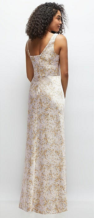One-Shoulder Draped Cowl A-Line Floral Satin Maxi Dress in golden hour
